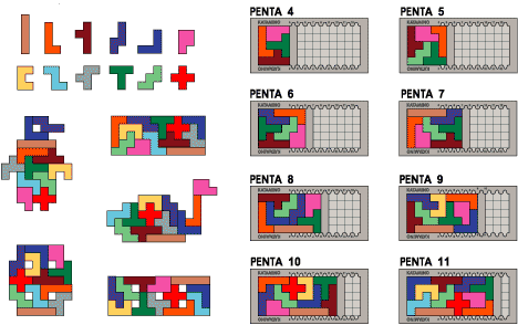Mit einem Katamino-Puzzle haben Sie somit gleichzeitig die Puzzle-Teile für zwei verschiedene Spiele/Puzzles: Katamino und Pentomino!