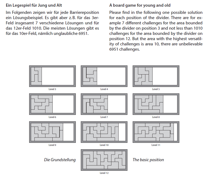 Eine Besonderheit der (teureren) Original-Katamino-Puzzles ist zudem, dass es auch zu zweit auf einem separaten 8x8-Spielbrett gespielt werden kann. Es ist für alle Altersgruppen (ab ca. 5 Jahren) geeignet.