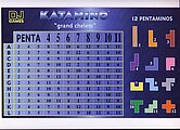 Das Katamino-Puzzle (auch Kataboom oder Katamini oder Levelmino genannt) besteht aus einem variablen Katamino-Spielbrett und normalerweise 12 Pentominos. Die Bezeichnung Katamino wurde abgeleitet von der griechischen Vorsilbe "kata" (für herab, abwärts, hinab, gegen, entgegen) und der griechischen Nachsilbe "mino" (für aneinandergefügte einheitliche Quadrate).