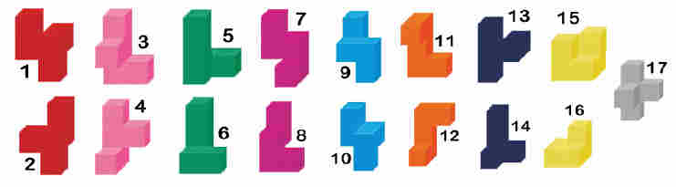 Diese 3D-Puzzle-Spiele bieten insgesamt 17 verschiedene Ausgangslagen, je nachdem welcher der 17 verschiedenen dreidimensionalen Pentacuben zu Beginn des Spieles in den "kleinen Raum" gelegt wird. Zum Auffüllen des "grossen Raumes" gibt es insgesamt einige tausend verschiedene Lösungsmöglichkeiten.