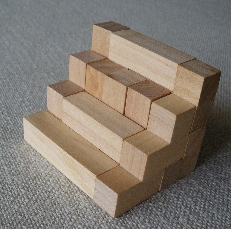 Die Verbindung dieser zwei Gebiete führt zur Veranschaulichung des Pythagoras-Lehrsatzes an einem Beispiel unter gleichzeitigem Einbezug des räumlichen Vorstellungs- und Kombinations-Vermögens und des spielerischen Erlernens einer mathematischen Formel (a2+b2=c2).