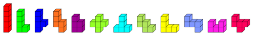 Fünf Einheitsquadrate werden so aneinandergefügt, dass je zwei benachbarte Quadrate eine gemeinsame Seite haben. Es können so zwölf unterschiedliche Figuren gebildet werden, wenn Spiegelungen und Drehungen unberücksichtigt bleiben.
